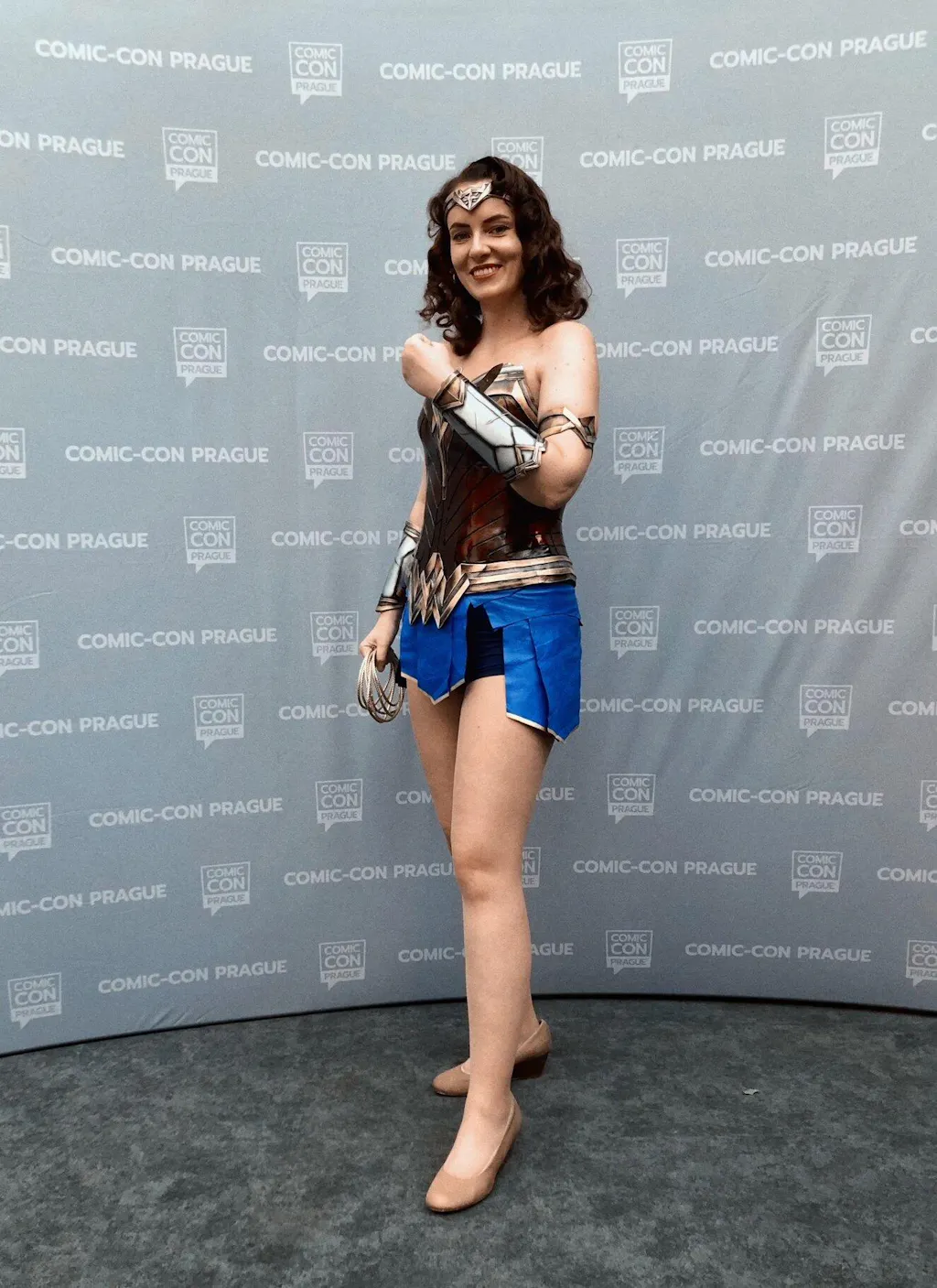 I ordered a full Wonder Woman costume about one month before ComicCon. It turned out that one month wasn’t enough time to complete the entire set, so Roberto and I agreed that he would deliver just the basic pieces, without the weapons, greaves, or bandolier. The costume arrived just in time, and the fit is perfect. (Although I do recommend having a friend nearby to help tie the corset properly!)